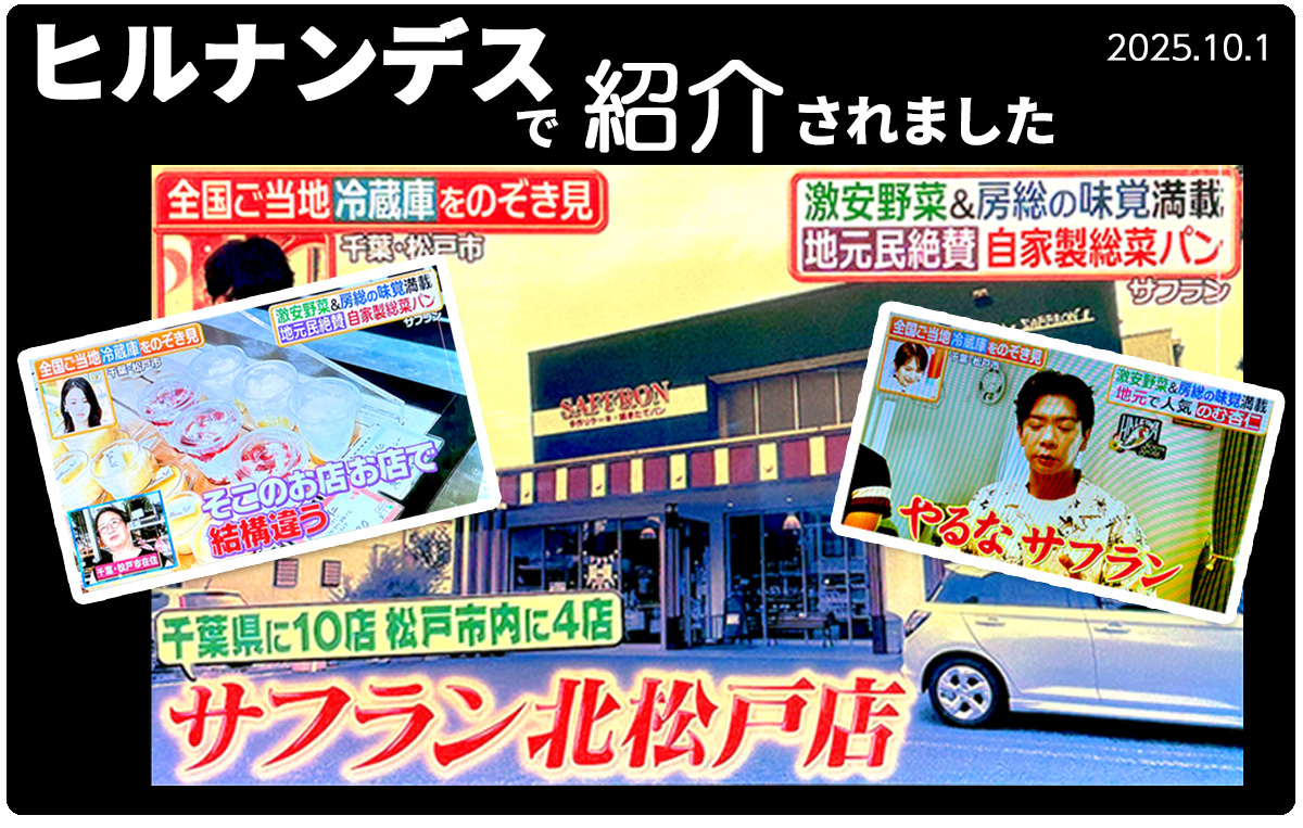 10/1(水)日本テレビ「ヒルナンデス」で、”地元民絶賛自家製惣菜パン”として北松戸店が紹介されました。